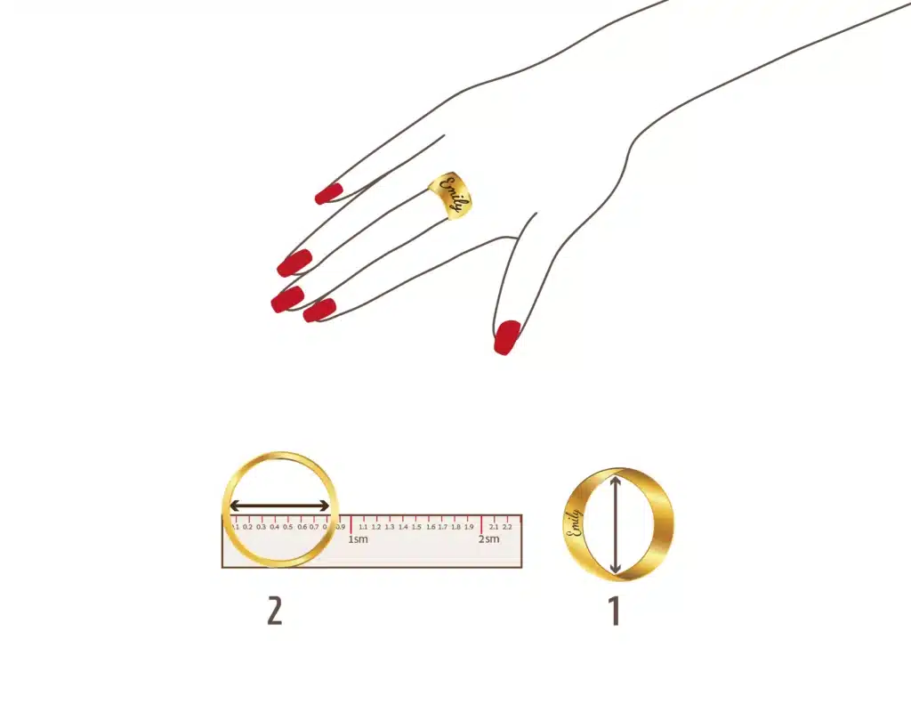 תמדדי בעזרת סרגל את הקוטר הפנימי של הטבעת והתאימי המידה לפי טבלת המידות המופיעה בהמשך.