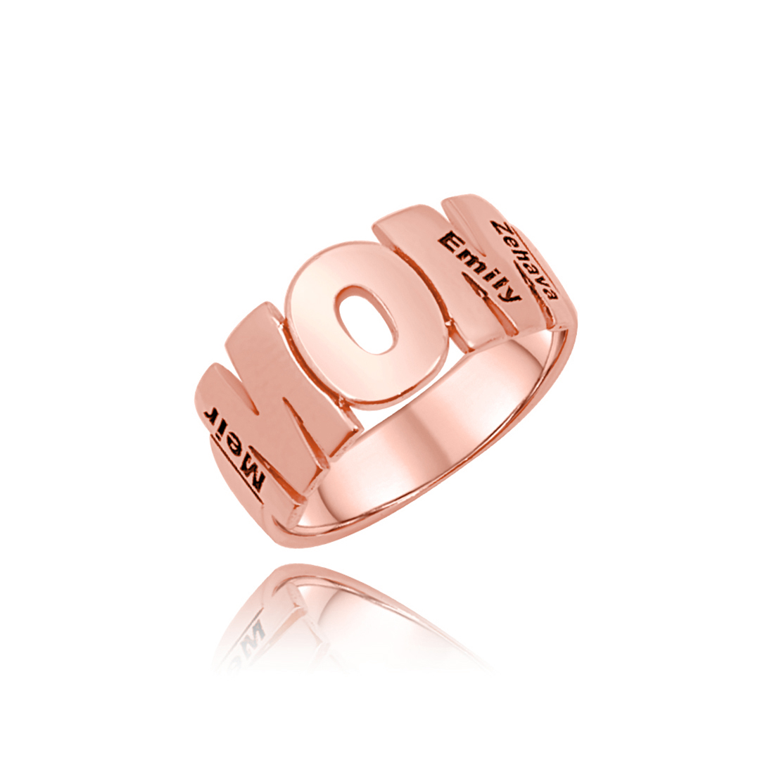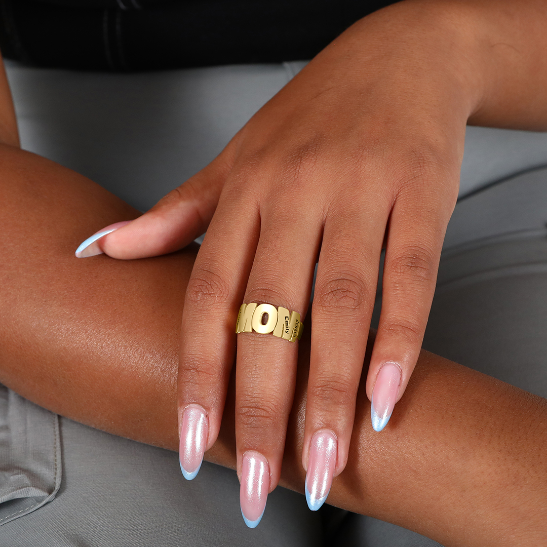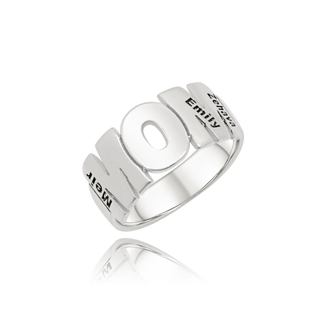 טבעת זהב MOM עם חריטת שמות – מתנה מרגשת לאמא באהבה אישית.
