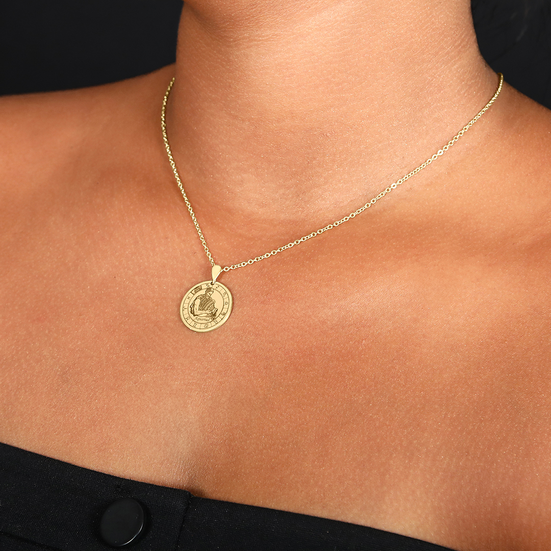 שרשרת עם תליון מטבע מוזהב – מזל דלי (Aquarius)