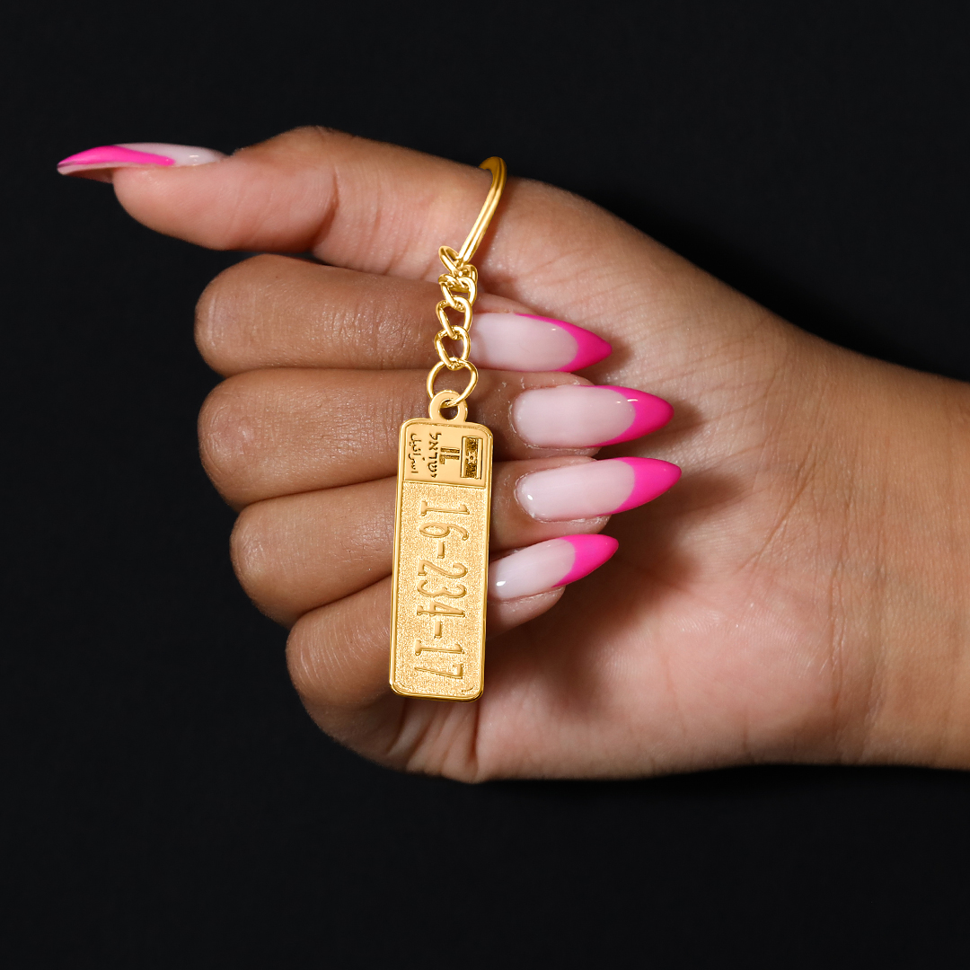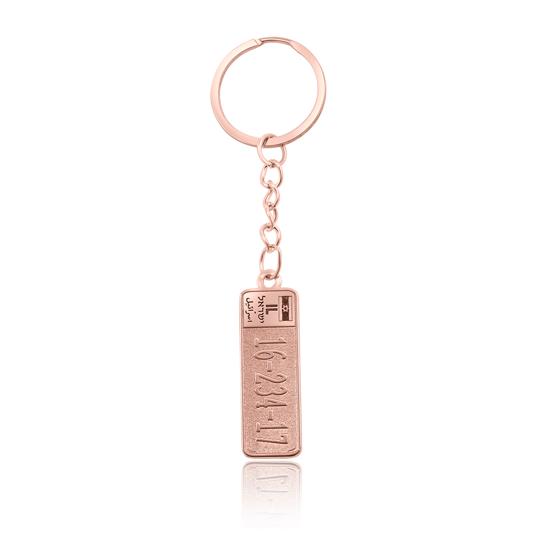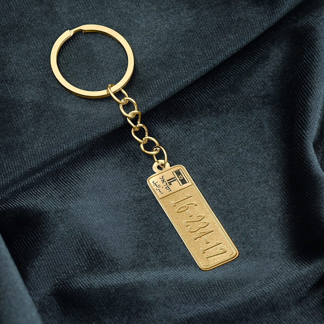 מחזיק מפתחות בעיצוב לוחית רישוי, המשלב בין סנטימנט אישי לבין נוכחות בולטת ויוקרתית. מתנה מדויקת לאוהבי רכבים או לכל מי שמחפש להעניק פריט עם משמעות.