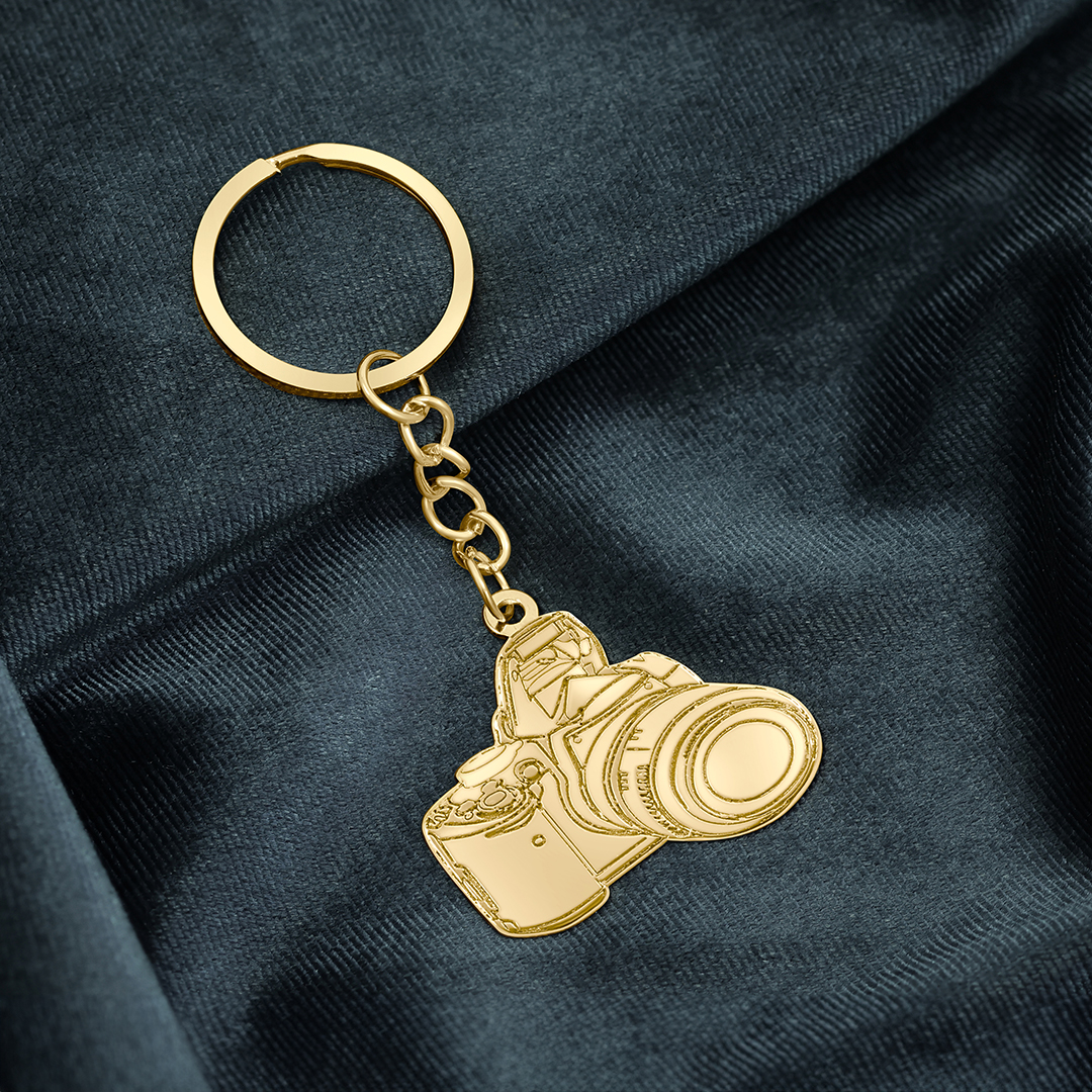 מחזיק מפתחות בצורת מצלמה שכולו אומר יצירתיות ואהבה לאמנות. מתנה מושלמת לחובבי צילום, מקצוענים או חובבנים, שכל פריים עבורם הוא זיכרון.