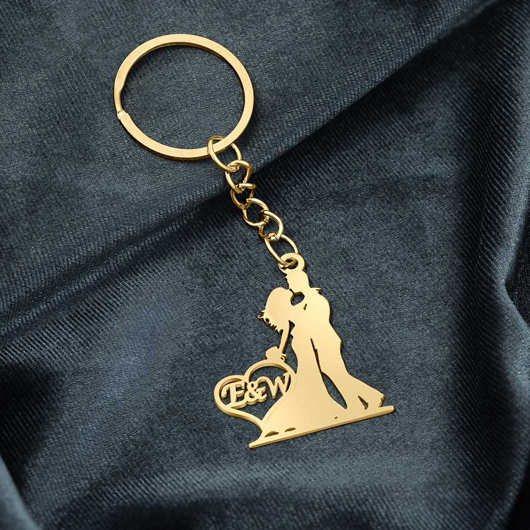 מחזיק המפתחות הזה הוא סמל לאהבה נצחית – זוג אוהבים בעיצוב ייחודי, עם ראשי התיבות שלהם בתוך לב.